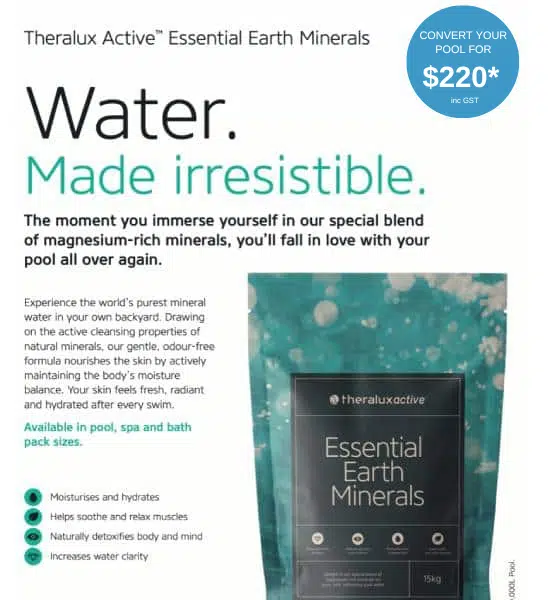 Mineral water has long been known for providing benefits to the body and mind, the Ancient Greeks were bathing in mineral baths since as early as 400 B.C. As soon as you jump into a Mineral Pool, you will instantly feel the difference and fall in love with your pool all over again. Drawing from the active cleansing properties of natural minerals, this gentle, odour-free formula nourishes the skin by actively maintaining the boy’s moisture balance. This leaves your skin feeling fresh, radiant and hydrated after every swim.