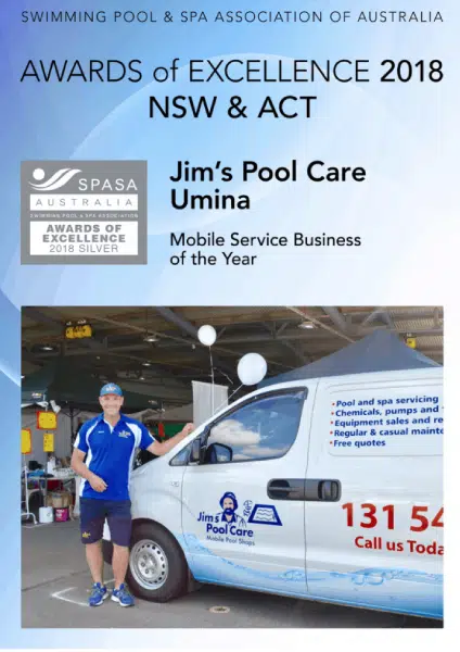 Jim’s Pool Care recognised at the NSW & ACT Awards of Excellence held by the Swimming Pool & Spa Association of Australia (SPASA)