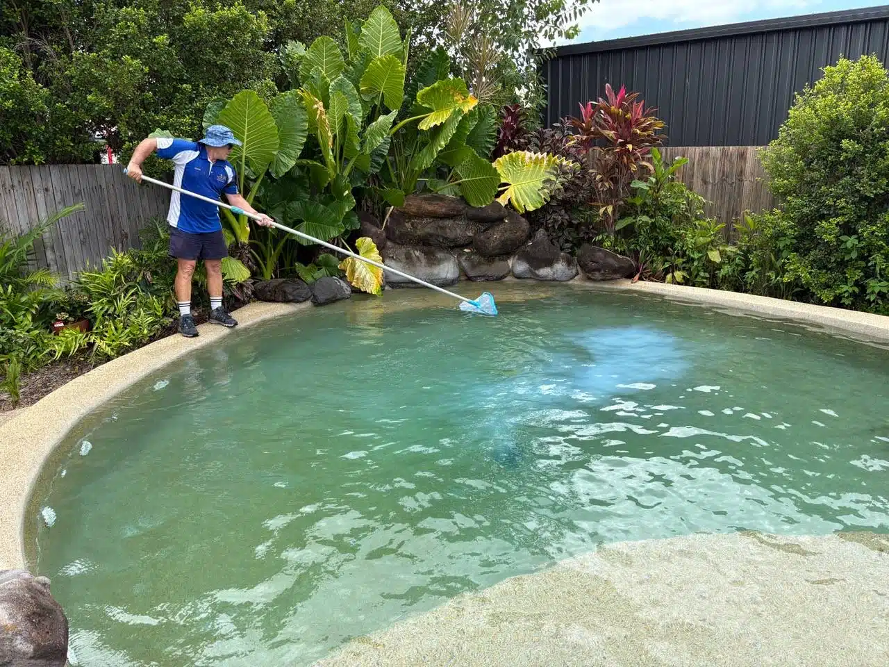 Townsville’s warm, breezy conditions often bring leaves, flowers, and dust into pools. Skim the surface daily if possible, and brush walls and steps weekly to stop algae before it takes hold.