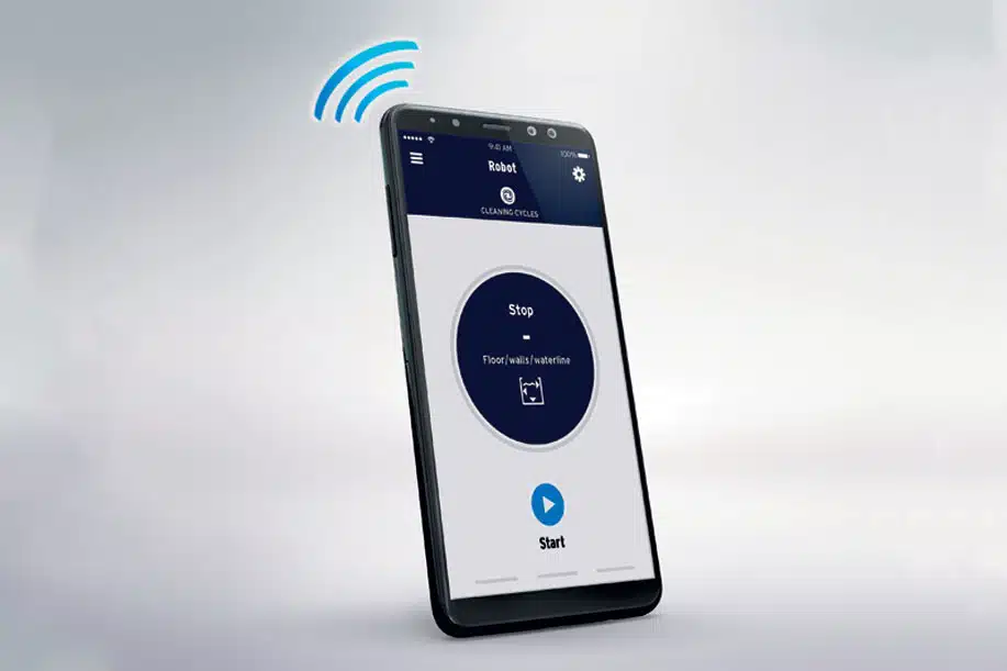 App connectivity gives users two additional cleaning mode option – SMART cycle and Waterline only cycle. App shows – Charging date / End-of-cycle notifications / Water retrieval assistance / Performance optimization via automatic updates.